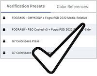 通过验证设置助手,您可以轻松为特定打印环境确定正确的验证预设和容差。